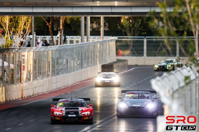 GT4组别方面,在下午1小时的SRO GT杯官方测试中,双线作战的星速车队车手陆文龙表现抢眼,在测试尾声驾驶20号莲花Emira GT4赛车跑出1:56.906的全场最快圈速,登顶成绩榜。TOYOTA GAZOO Racing China车队韩坜潮,驾驶33号丰田GR Supra GT4 EVO II赛车以1:57.087紧随其后;星速车队另一位车手陆文虎(AM组别领先者)驾驶75号莲花GT4赛车交出1:58.066的圈速,与陆文龙组成“龙虎兄弟”占据全场前三中的两席,成为本节最大亮点。
