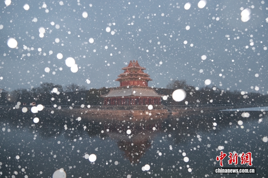 图为雪中亮灯的故宫角楼。中新社记者 杨郁然 摄