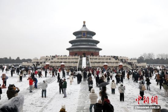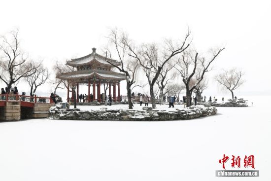 图为游客在雪中参观颐和园。中新社记者 易海菲 摄