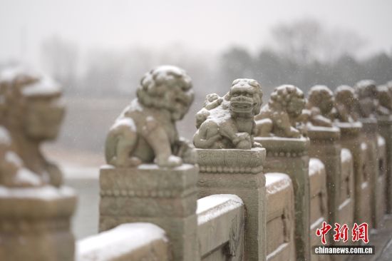 雪中的卢沟桥银装素裹。中新社记者 蒋启明 摄