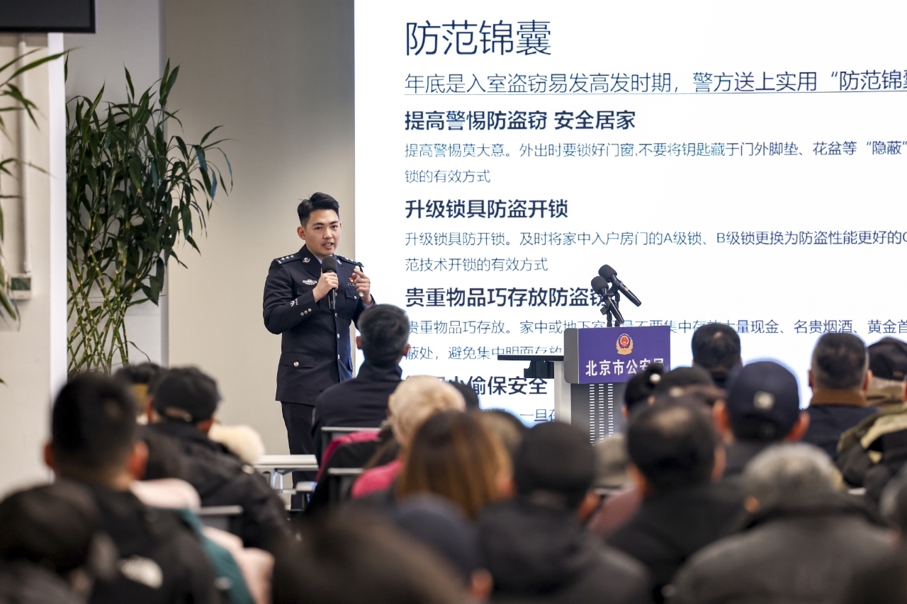 据悉,在主会场现场,来自右安门街道辖区的网格员、出租房主、旅店负责人代表以及居民代表参加活动。丰台公安分局人口基层大队民警围绕出租房屋治安管理,从出租登记、举报奖励、违法处罚等角度进行了政策宣讲;反诈中心民警对当前多发新发的电诈类型和防范要点,进行了重点提示;治安支队民警结合《北京市人民政府关于公布无人驾驶航空器管制空域范围的通告》、入住旅店实名登记等相关内容,与现场群众进行互动问答;右安门派出所有关负责人通报了辖区治安形势,社区民警则介绍了冬季入室盗窃案件发案规律特点,提示广大群众通过更换C级锁等方式,强化防范应对能力。同时,针对冬季防火以及群众徒步登山安全等注意事项,邀请丰台消防救援支队消防员到场开展了安全宣讲。