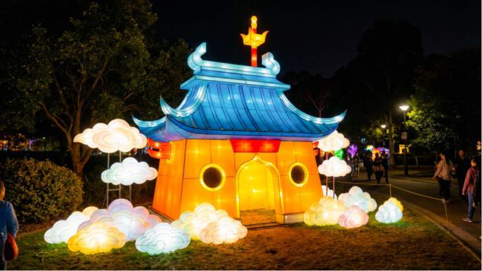 在世园国际旅游度假区一号门入口处,高达12米的南天门是本次灯会造型最大花灯,配合科技光束,整个南天门将美轮美奂,宛如童话中的仙境走进现实。