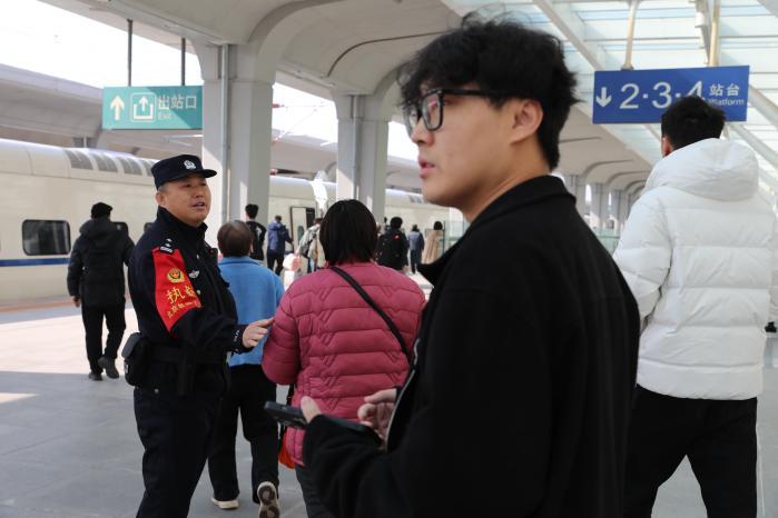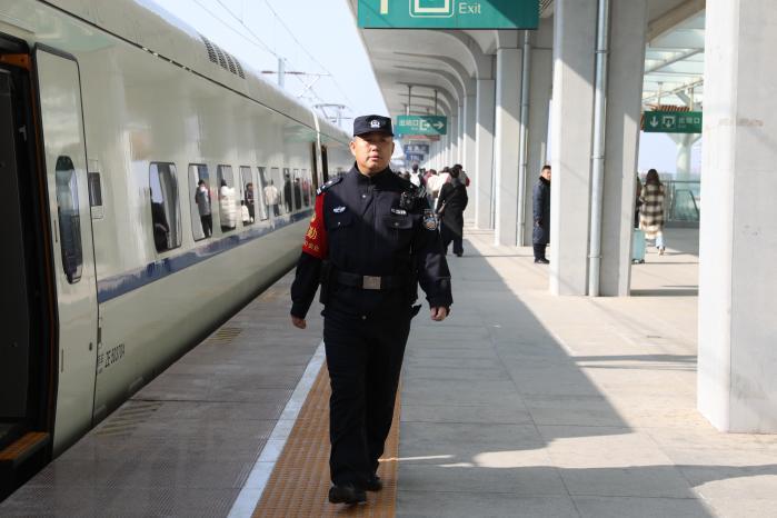 初春时节,八达岭长城还覆盖着丙午马年的瑞雪,络绎不绝的旅客已纷沓而至。站台上,民警老孙身姿挺拔,迎着和煦阳光笔直伫立。