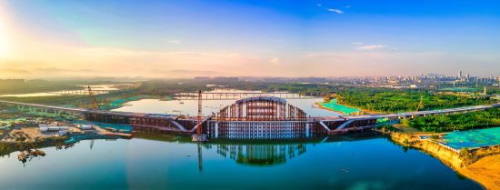 京雄大桥位于永定河与京雄高速“交汇点”,全长1.62公里,其中东引桥410米、西引桥690米、主桥520米,主拱跨度达300米。建成后,将成为北京单跨跨度最长的桥梁。大桥主梁宽度达48米,未来将承载京雄高速双向八车道的车流。