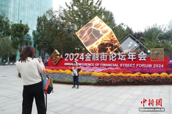 图为行人在2024年金融街论坛年会元素装置前拍照。 张祥毅 摄