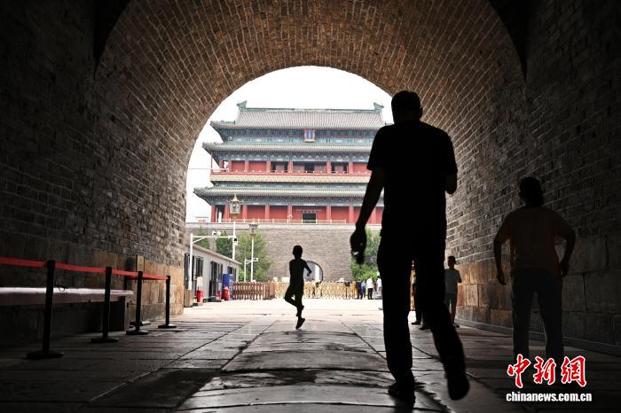 2025年7月27日是北京中轴线申遗成功一周年,游客在北京正阳门箭楼游览。 中新社记者 王紫儒 摄