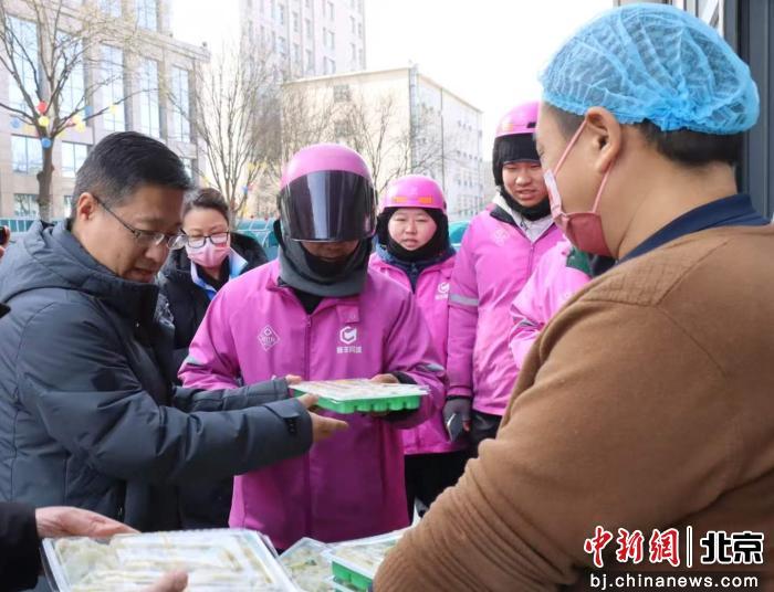 临近中午,热气腾腾的饺子出锅,大家围坐在一起,边吃边聊,分享工作的忙碌和新年的打算。与此同时,志愿者们将一部分煮好的饺子细心分装进餐盒,并与晾干整理好的春联、“福”字一起,组成一份份“新春暖心礼包”。街道总工会和史超齐劳模工作室的志愿者带着这些礼包,走访了附近仍在工作的部分外卖站点、快递网点和楼宇的门卫,将饺子和春联送到未能来到现场的一线劳动者手中,为他们送去新春的祝福和节日的温暖。