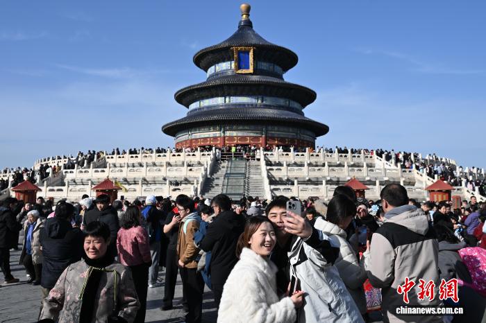 2月23日,春节假期最后一天,北京天坛公园游客络绎不绝。 中新社记者 赵文宇 摄