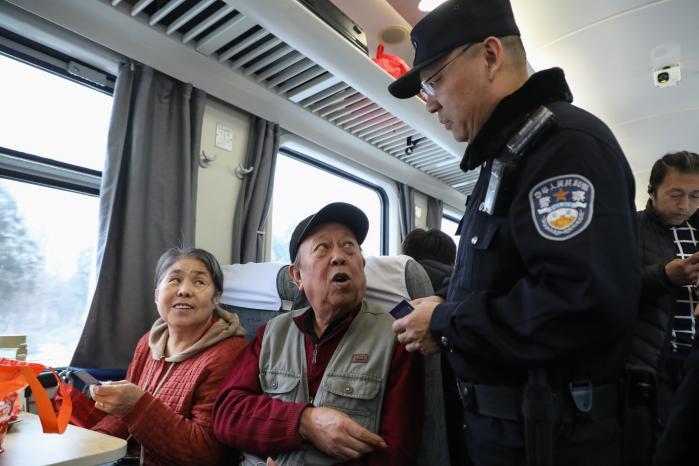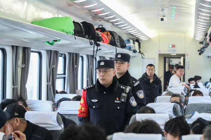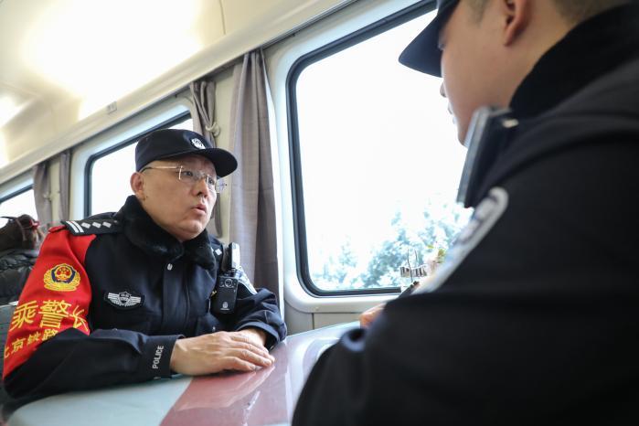 此后的多年时间里,因业务能力突出,孙福瑞逐渐淡出了值乘一线,而是转入队伍管理岗位继续积累经验。今年春运,孙福瑞被派到往返于首都北京与东北边城辽宁丹东的K27/8次列车上进行乘务工作指导,搭档的正是他的警营徒弟柳鑫源。乘警小柳2023年入警,接触乘警工作不到两年,这也是他在列车上经历的第二个春运“大考”。