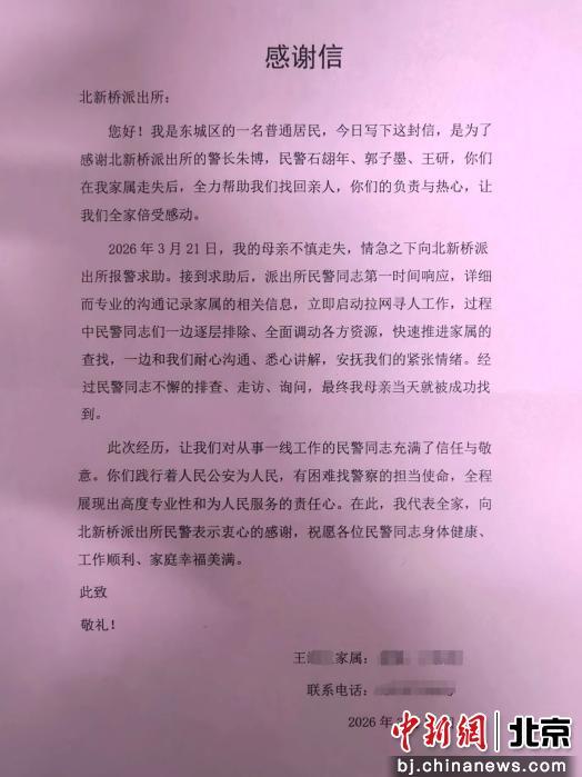 中新网北京新闻3月26日电 “长得比吴彦祖帅,找人比苏炳添快,那叫一个地道。”北京市公安局东城分局北新桥派出所日前接到袁大爷焦急求助:74岁的老伴王大妈患有疾病已有4年,上午出门时没带手机,在雍和宫大街附近就找不到人了。