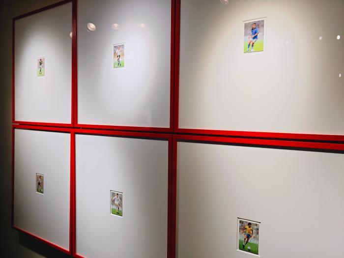 在观德殿正殿内,艺术家冷军的超写实油画经典力作《小唐》重磅亮相,作品以极致细腻的笔触还原人物神韵与内在质感,发丝光泽、皮肤纹理、布料褶皱纤毫毕现。首次公开展出的超小幅油画《足球先生》系列,单幅仅有银行卡大小,方寸之间见功力,细微之处显匠心。