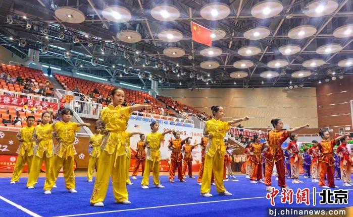 中新网北京新闻4月19日电 2026年西城区、门头沟区青少年武术赛4月18日至19日在北京月坛体育馆举行。作为已连续举办十届的区域品牌赛事,本届比赛共有87家单位报名参赛,较去年新增13家,连续四年保持增长,赛事规模再创历史新高。